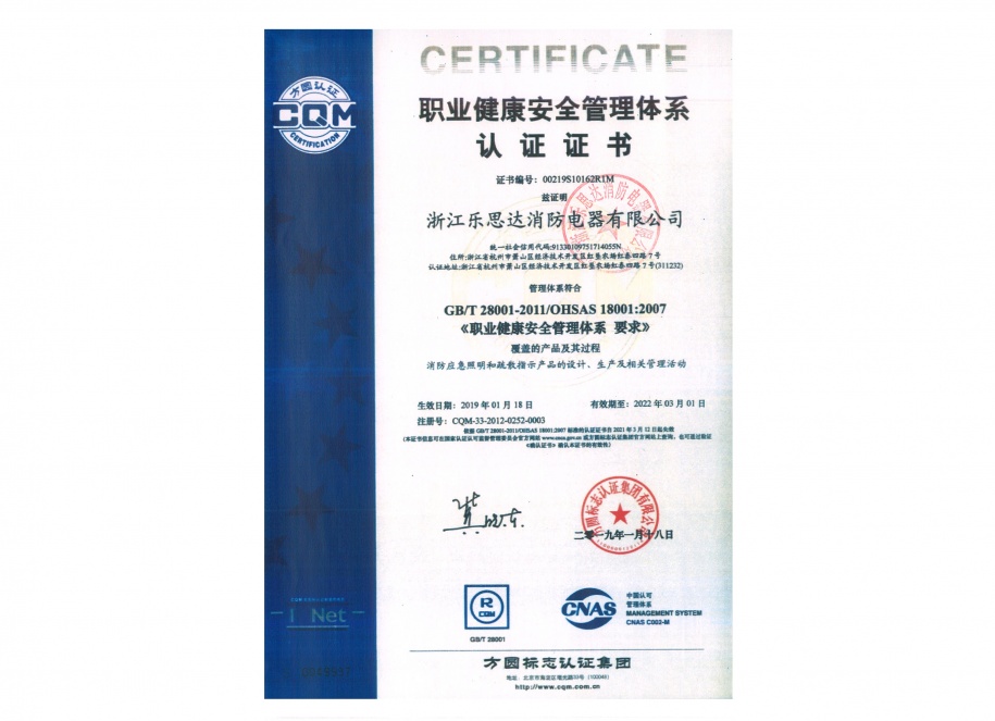 職業(yè)健康安全管理體系認(rèn)證證書