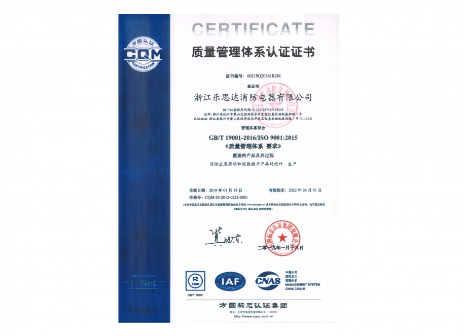 質(zhì)量管理體系認(rèn)證證書
